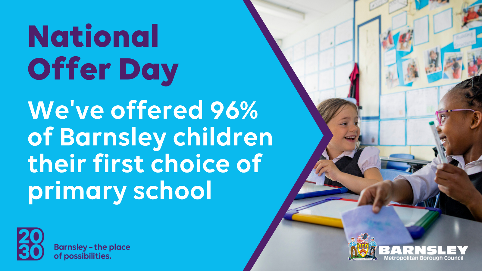 Families across Barnsley have been finding out which primary school their children will be joining in September, in today’s National Offer Day.